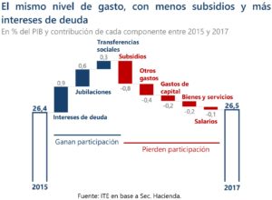 Lo cierto es que, en los hechos, el gobierno ya había comenzado a aplicar varias de las recetas del FMI. Ajuste en jubilaciones, Ley de Responsabilidad Fiscal y recorte en subsidios fueron algunas de las recomendaciones del organismo que ya fueron implementadas por Cambiemos. El diagnóstico que orienta las demandas del FMI sostiene que el gasto argentino es “insostenible” y “limita la inversión, la competitividad, la creación de empleo y el crecimiento”. De acuerdo con la “nueva” mirada del organismo -Dujovne dixit- hay que disminuir aún más el gasto y reducir su concentración en salarios de empleados públicos, jubilaciones y transferencias sociales para adecuarlo a la realidad regional.