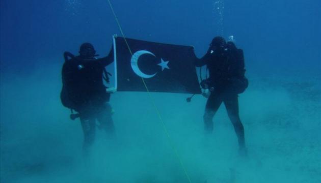 Εκεί λοιπόν οι Τούρκοι δύτες των ειδικών δυνάμεων SAS φωτογραφήθηκαν κρατώντας την Τουρκική σημαία στον βυθό του κόλπου της Σούδας.